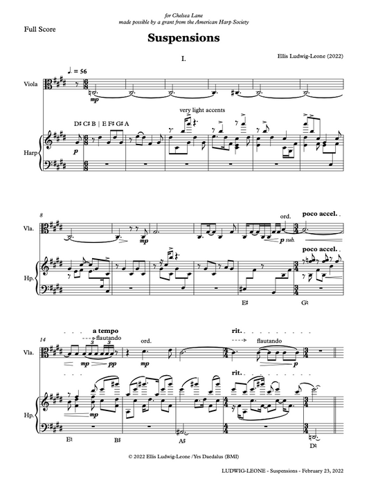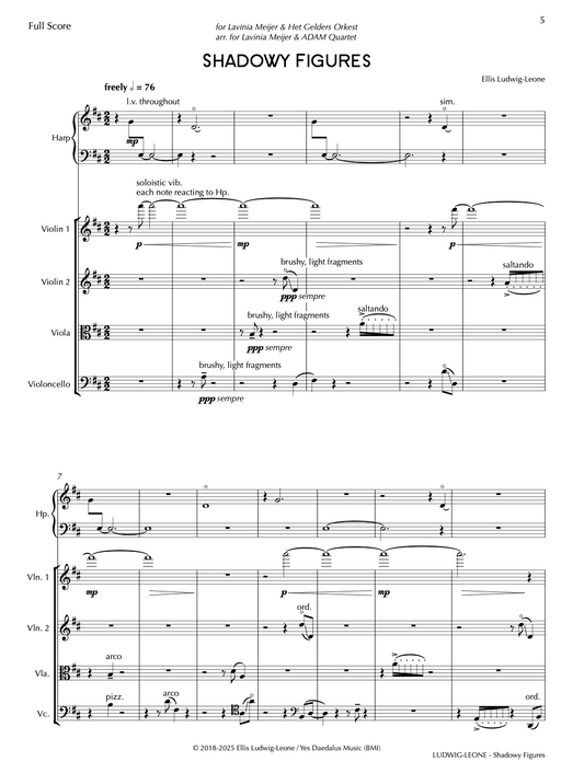 5 players: harp and string quartet - Shadowy Figures