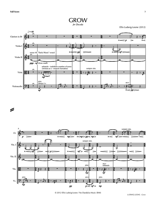 5 players: cl, string quartet - Grow