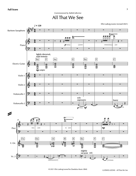 7 players: sax, e gtr, pno, 2 vln, 2 vc - All That We See