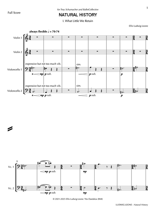 8 players: fl, cl, pno, perc, 2 vln, 2 vc - Natural History